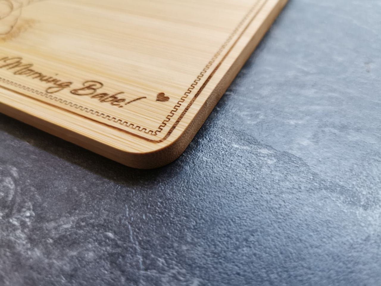 Das Motiv ist von mir selbst in das Bambus Brett eingebrannt!